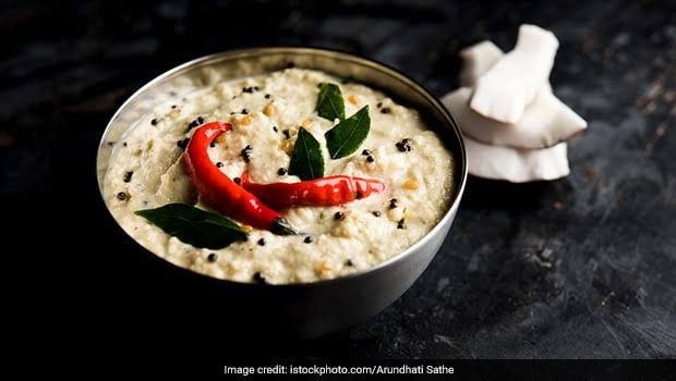 Coconut chutney: The quintessential South Indian chutney and notably the most recognised. The taste is largely dependent on the freshness of the coconut used.