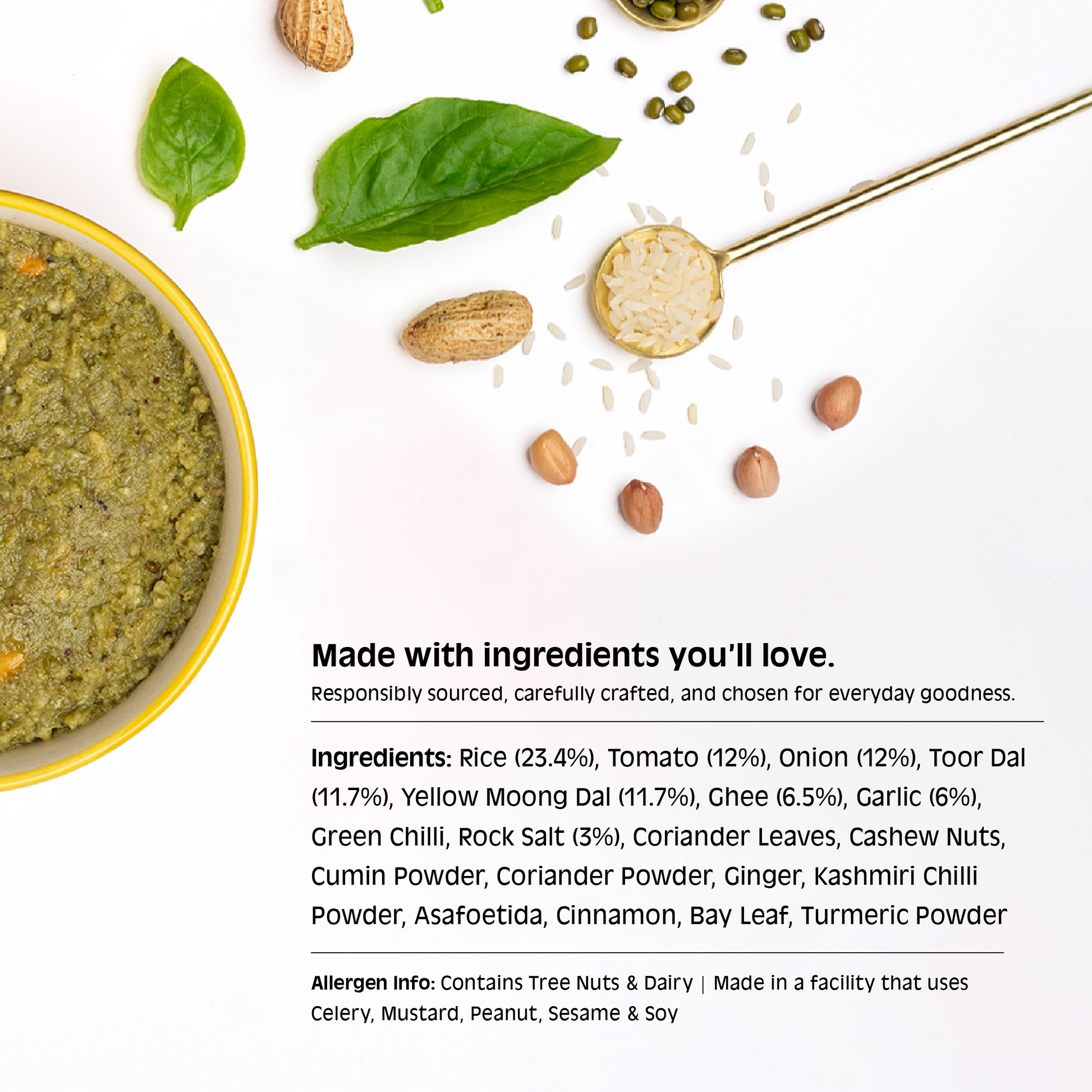 A nourishing palak khichdi with mild spices and earthy richness of spinach.